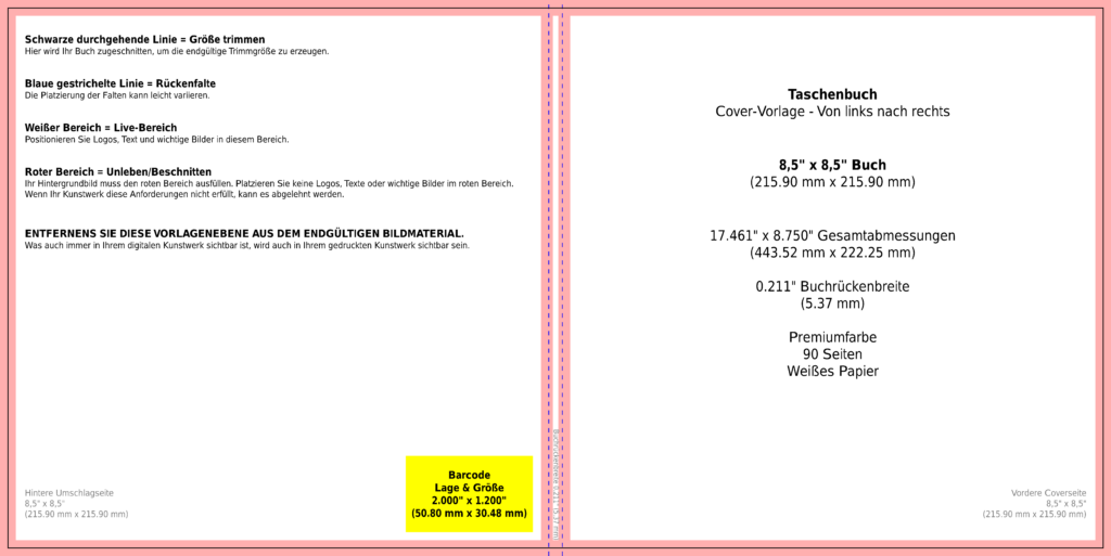 Und bekomme eine exakte Angabe der Maße mit Rückenbreite und Beschnitt.